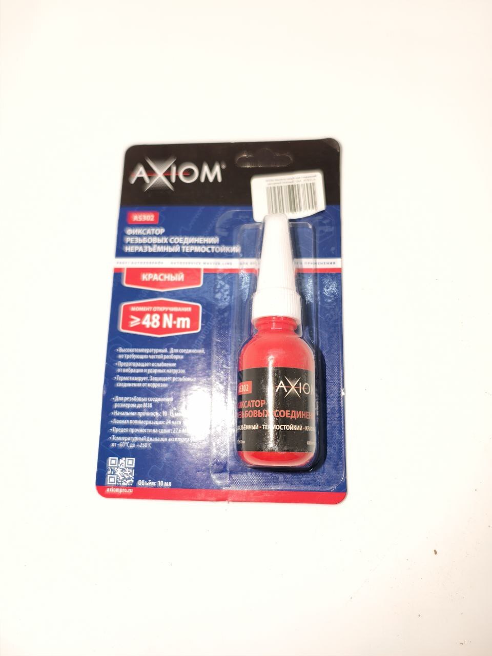 AXIOM Фиксатор резьбовых соединений разъемный (красный) 10мл. AS302 - это профессиональное средство для защиты от самоотвинчивания крепежных элементов. Предотвращает ослабление винтовых соединений даже при сильных вибрациях и ударных нагрузках. Удобная упаковка позволяет точно дозировать количество фиксатора. Подходит для использования в различных отраслях промышленности и производства.
